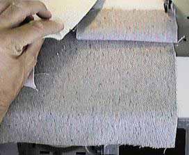 You wouldn't be able to railroad the fabric like we did here if you have the standard 54" wide upholstery material. However on some upholstery jobs, including some sofa inside backs, it is necessary to piece the fabric. Usually you would use a full width adding fabric to both sides. Allow for all your seams. After sewing you can iron the seams flat and/or top stitch them if extra strength is needed.